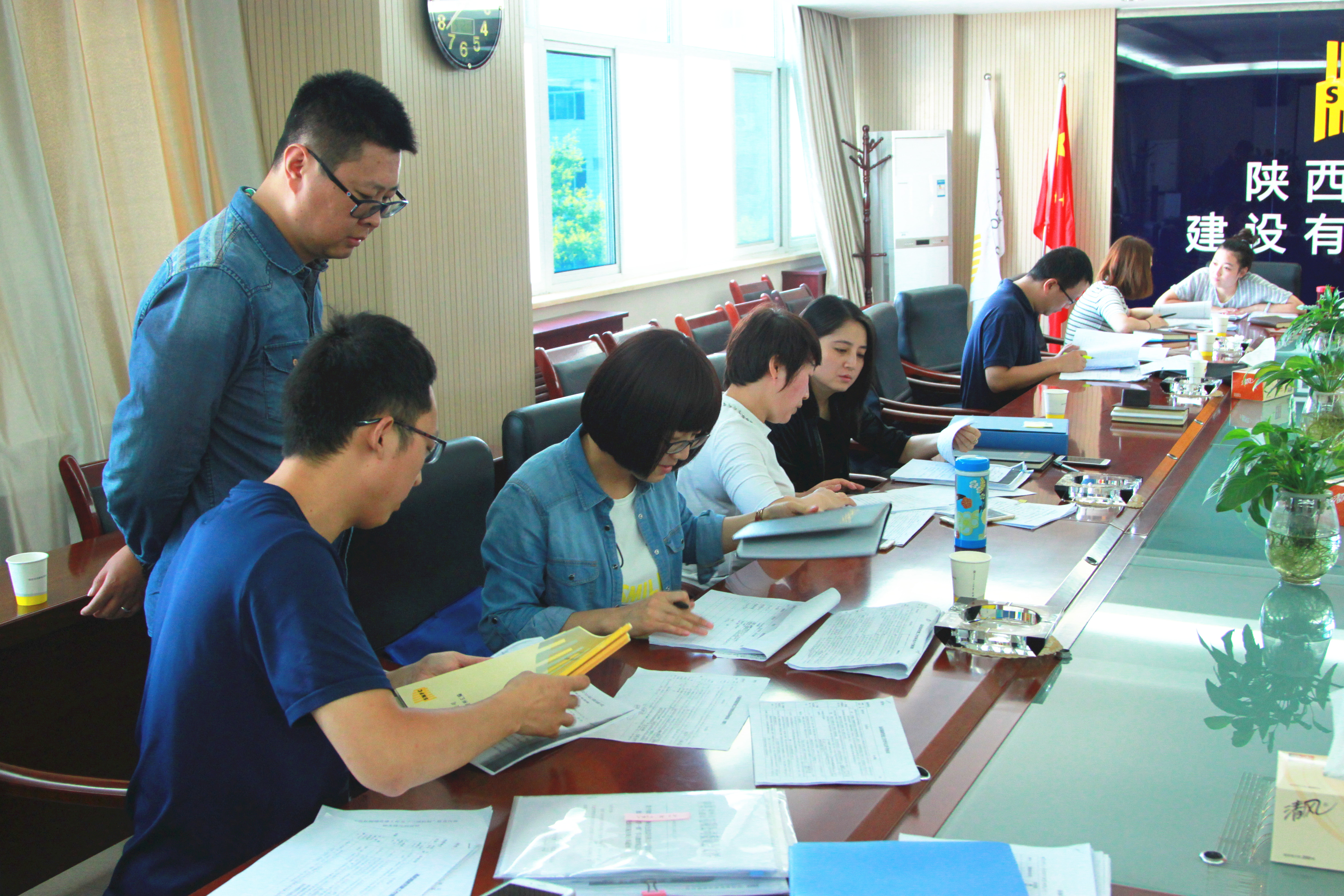 會后,韓主任帶領工作人員對我公司黨建及”追趕超越”工作的軌跡資料展開了詳細的檢查,也為下一階段的工作作出了指導。