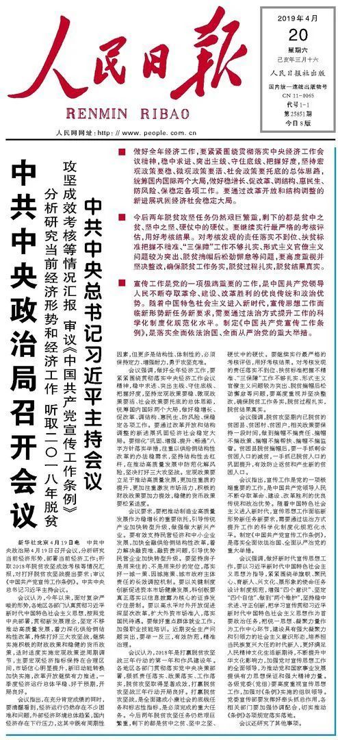 2019年4月19日,中共中央政治局召開會(huì)議,審議《中國共產(chǎn)黨宣傳工作條例》