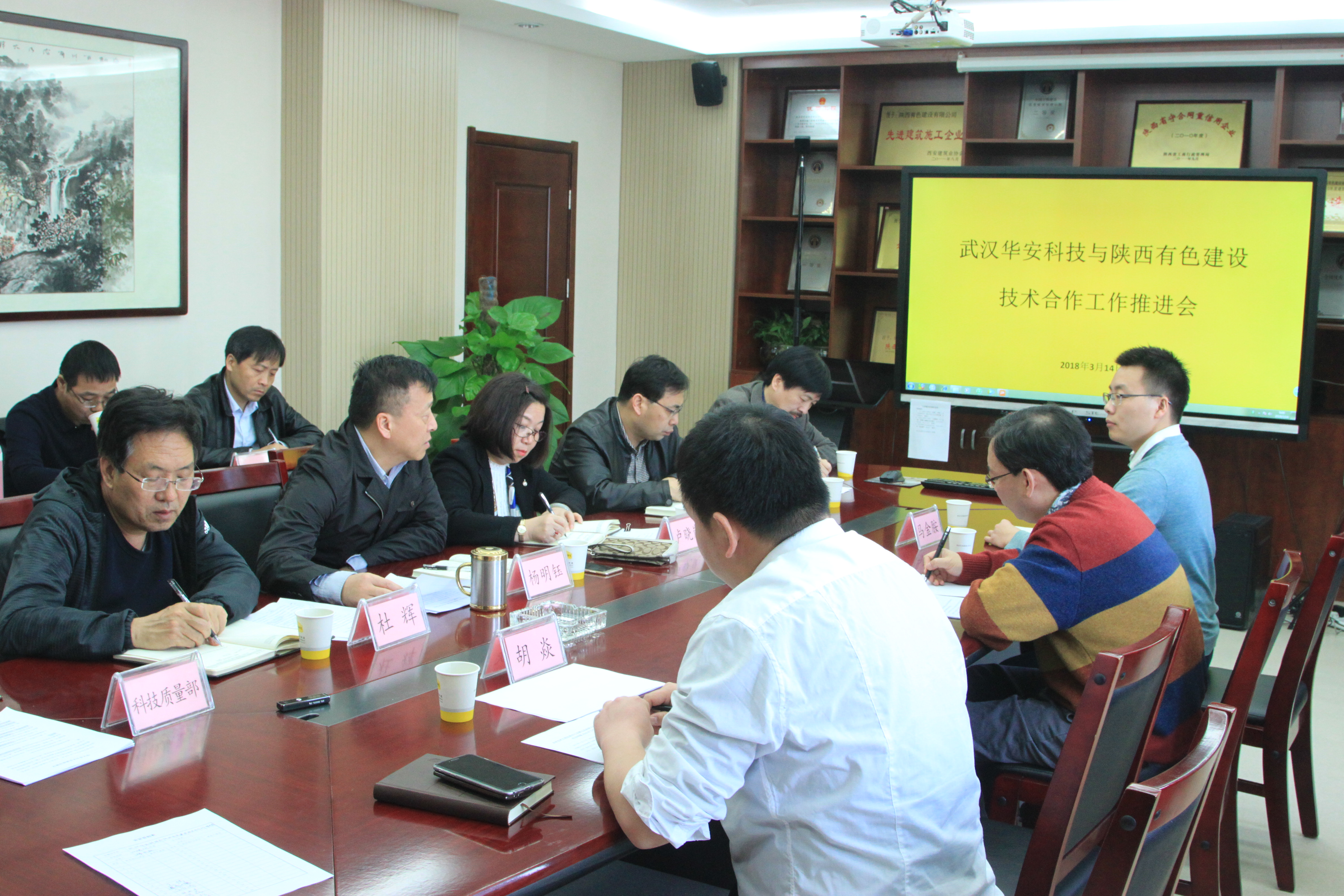 3月14日上午,公司在六樓會(huì)議室召開(kāi)BIM技術(shù)工程應(yīng)用中心2017年度工作總結(jié)會(huì)暨武漢華安科技股份有限公司與陜西有色建設(shè)有限公司技術(shù)合作推進(jìn)會(huì)。會(huì)議由總經(jīng)理?xiàng)蠲麾曋鞒?。董事長(zhǎng)盧曉嵐和公司相關(guān)領(lǐng)導(dǎo)、相關(guān)部門(mén)負(fù)責(zé)人、華安科技董事長(zhǎng)代松、BIM中心負(fù)責(zé)人胡焱主任參加了此次會(huì)議。