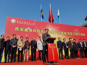 3月31日上午,陜西有色建設(shè)有限公司在建大紫閣書院項(xiàng)目施工現(xiàn)場(chǎng),隆重舉行了西安建筑科技大學(xué)草堂校區(qū)紫閣書院工程Ⅲ標(biāo)段工程主體封頂儀式。儀式由建大新校區(qū)建設(shè)工程指揮部辦公室主任武六元主持,公司副總經(jīng)理史濤及學(xué)校相關(guān)負(fù)責(zé)人出席此次活動(dòng)。