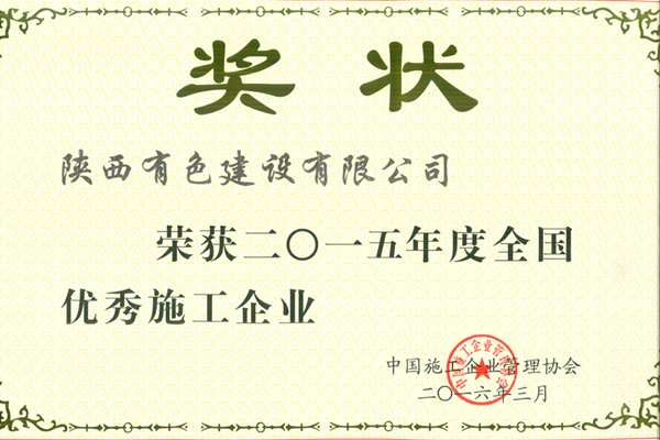日前,中國(guó)施工企業(yè)管理協(xié)會(huì)授予公司“2015年度全國(guó)優(yōu)秀施工企業(yè)稱號(hào)”。